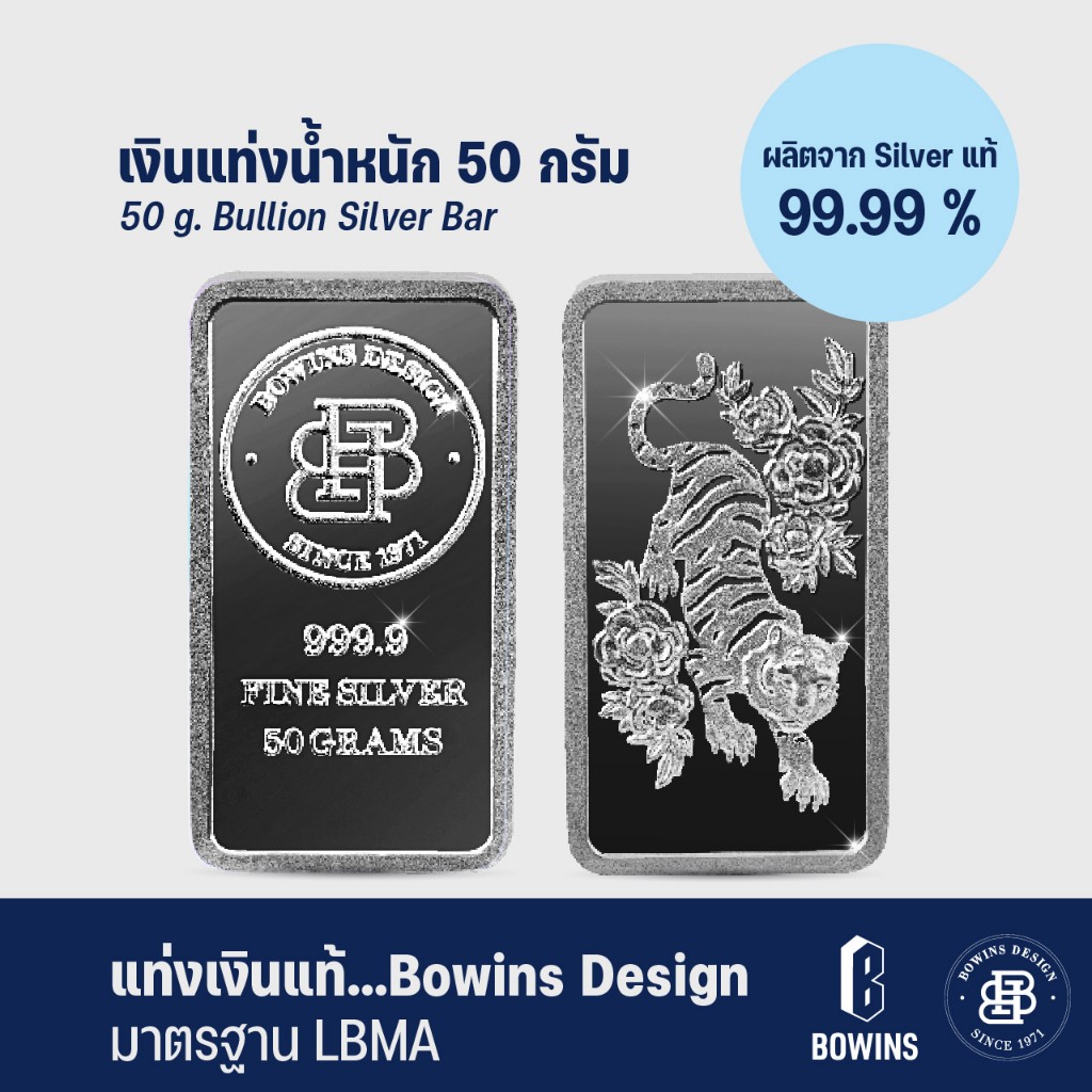 แท่งเงิน 99.99% น้ำหนัก 50 กรัม - ลายเสือขาว - Bullion Silver Bar 50 Grams - Tiger