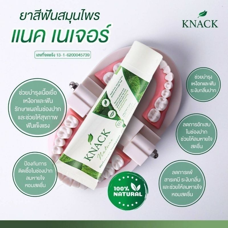 สมุนไพร 12 ชนิด ยาสีฟัน KNACK NATURE TOOTHPASTE 100g ยาสีฟัน แนค เนเจอร์ ขนาด 100กรัม