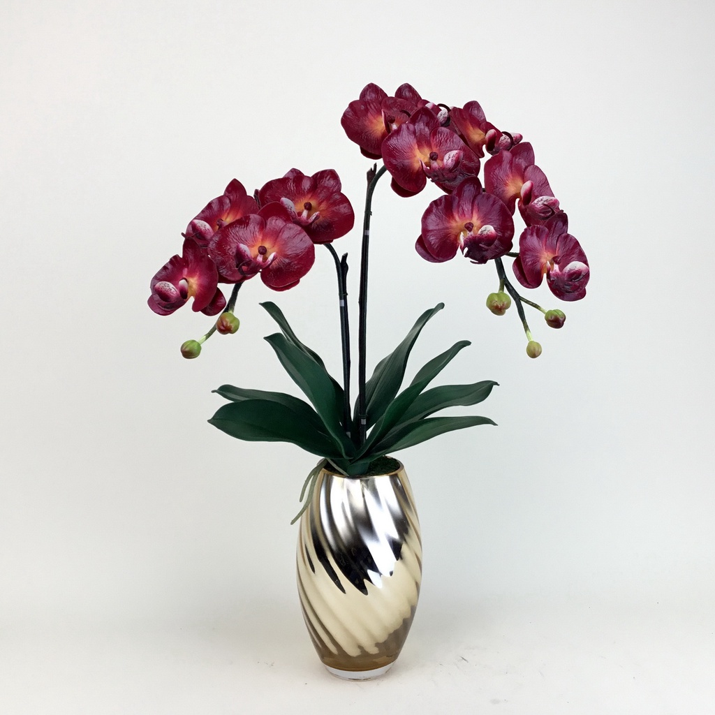 แจกันดอกไม้ปลอมแต่งบ้าน ดอกไม้ประดิษฐ์ กล้วยไม้สีแดงพร้อมแจกัน