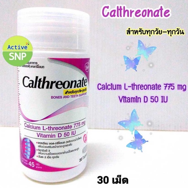 Calcium L-threonate 775 mg Vitamin D 50 IU 30 เม็ด // แคลเซี่ยม แอล-ทรีโอเนท 30เม็ด (ผลิตจากข้าวโพด)