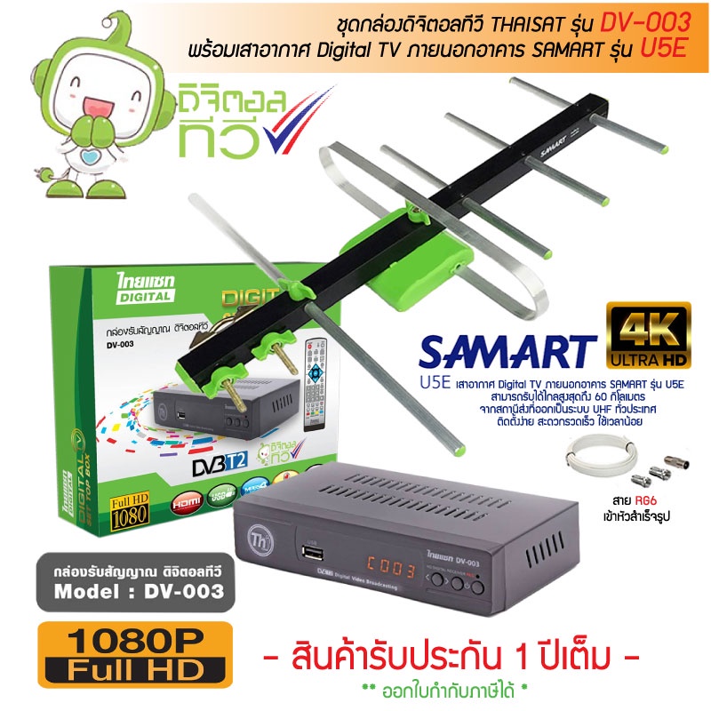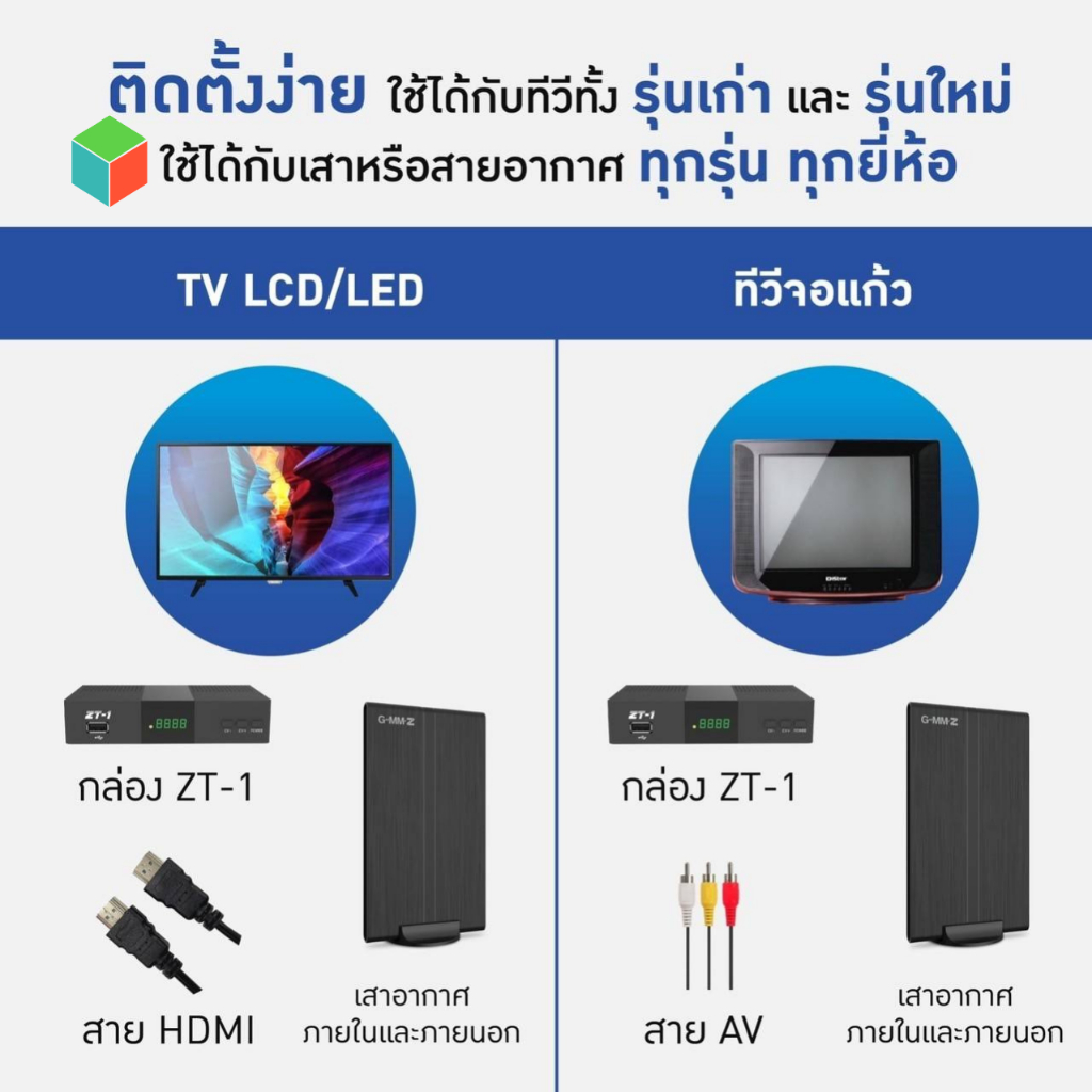กล่องดิจิตอลทีวี GMM Z ZT-1+ เสาอากาศ Digital TV ภายนอกอาคาร SAMART รุ่น U5E + สาย RG6 เข้า