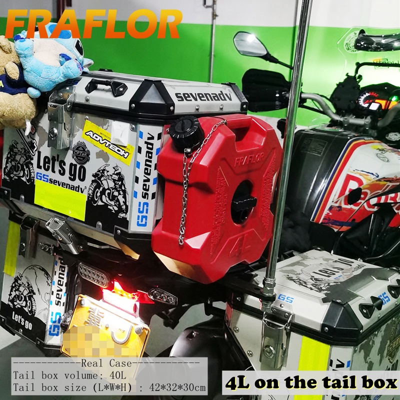 ถังท้ายรถจักรยานยนต์และกลิ้งบาร์ติดตั้ง 4L น้ำมันเบนซินรถบรรทุกถัง Jerrycan สามารถ ATV UTV สำรอง Jerrycan ถังน้ำมันเบนซิน ถังแก๊สพลาสติกขวดเชื้อเพลิงสำรอง ถังเก็บน้ำสำรอง