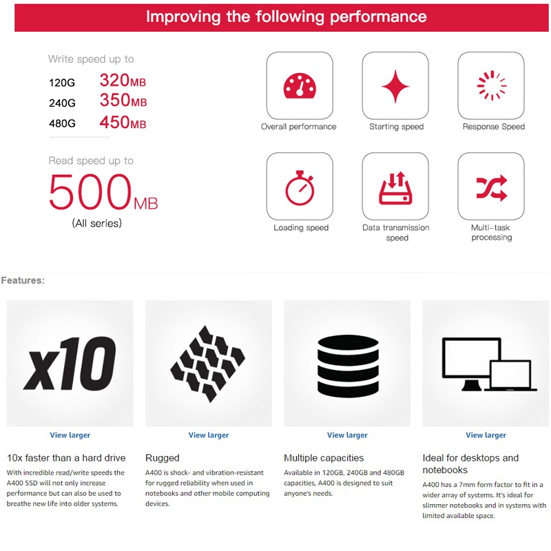【จัดส่งในพื้นที่】SSD (เอสเอสดี) 240GB 120GB 480GB 960GB Kingston A400 2.5” SATA III เหมาะสำหรับโน๊ตบุ๊คและเดสก์ท็อป