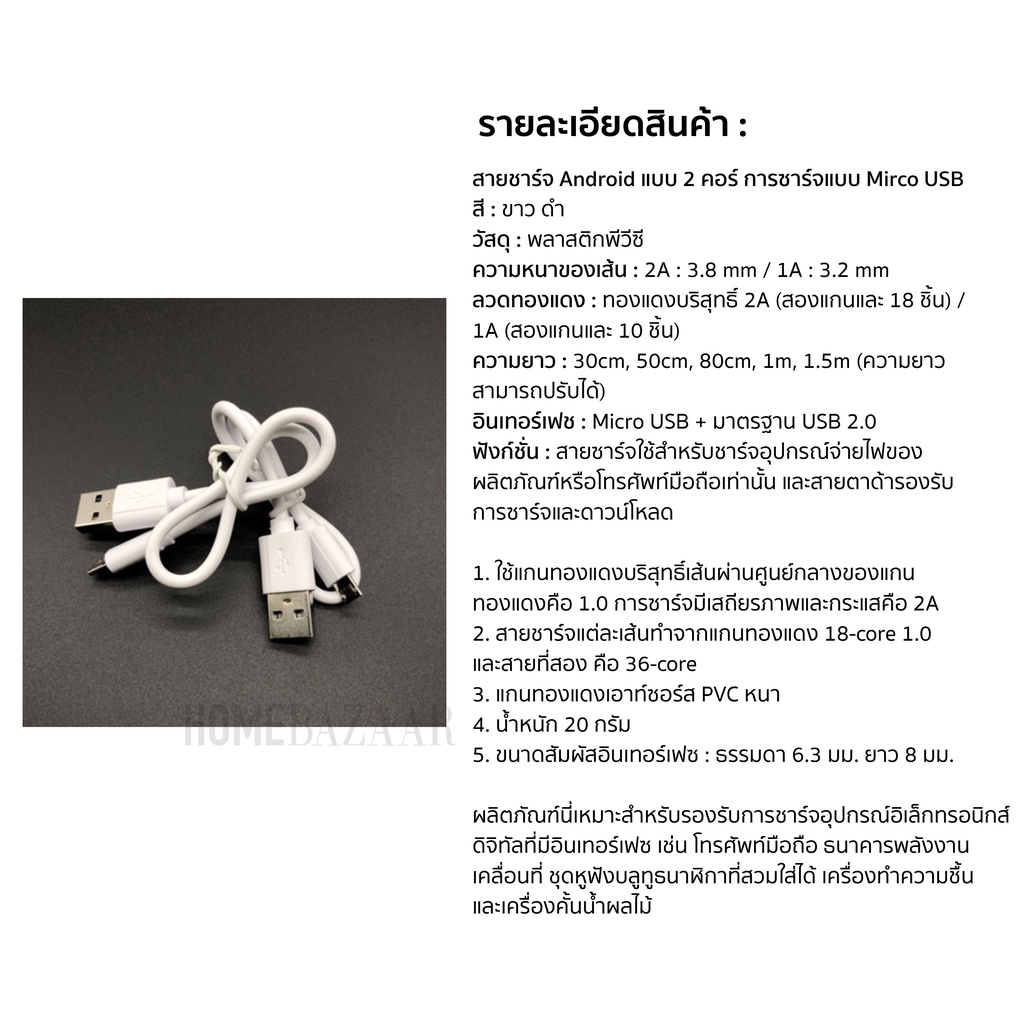 สายชาร์จ Android มือถือ โทรศัพท์ ยาว 1เมตร สายชาต แอนดรอยด์ Oppo Samsung Vivo micro USB