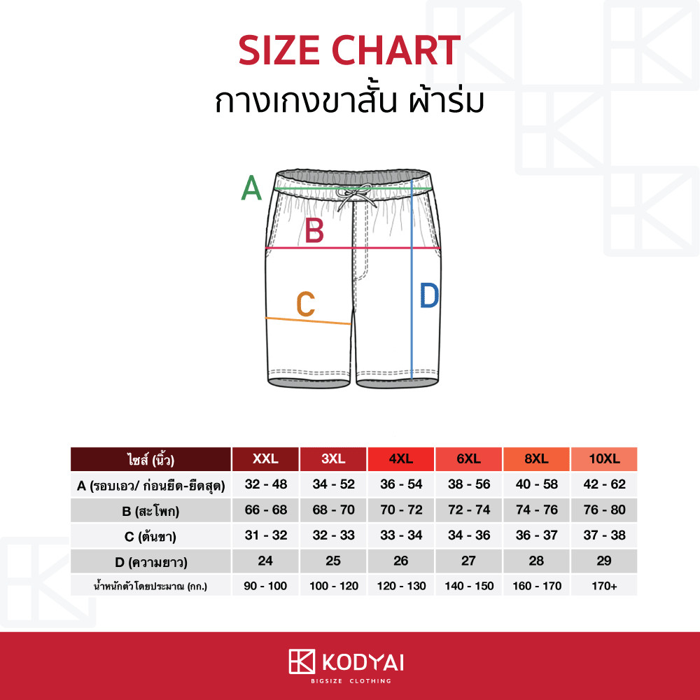 กางเกงขาสั้น ผ้าร่ม เอว 48 นิ้ว ลดล้างสต็อค ไซส์ใหญ่พิเศษ กางเกงคนอ้วน : KODYAI