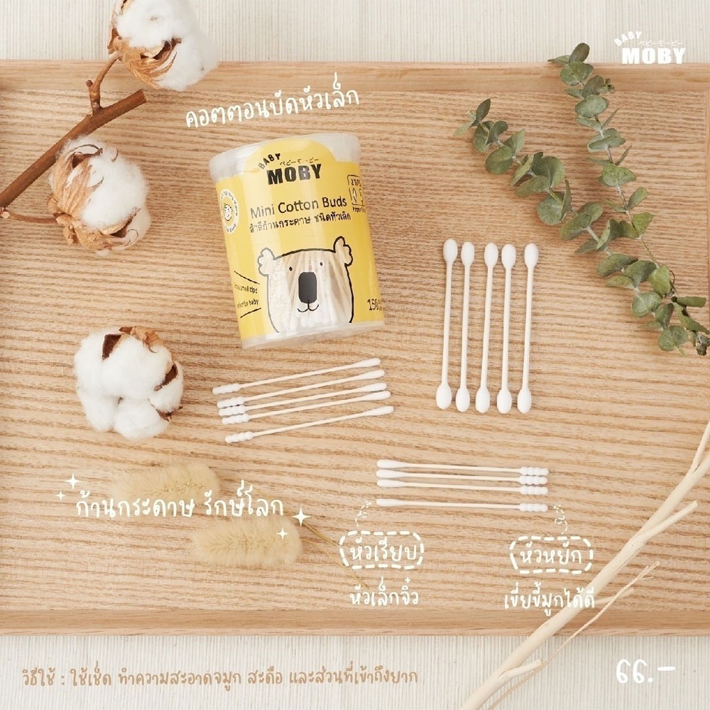 Moby คอตตอนบัตหัวเล็ก คอตตอนบัตหัวใหญ่ คอตตอนบัตก้านกระดาษ ชนิดเติม 1 แพ็คมี 3 ชิ้น
