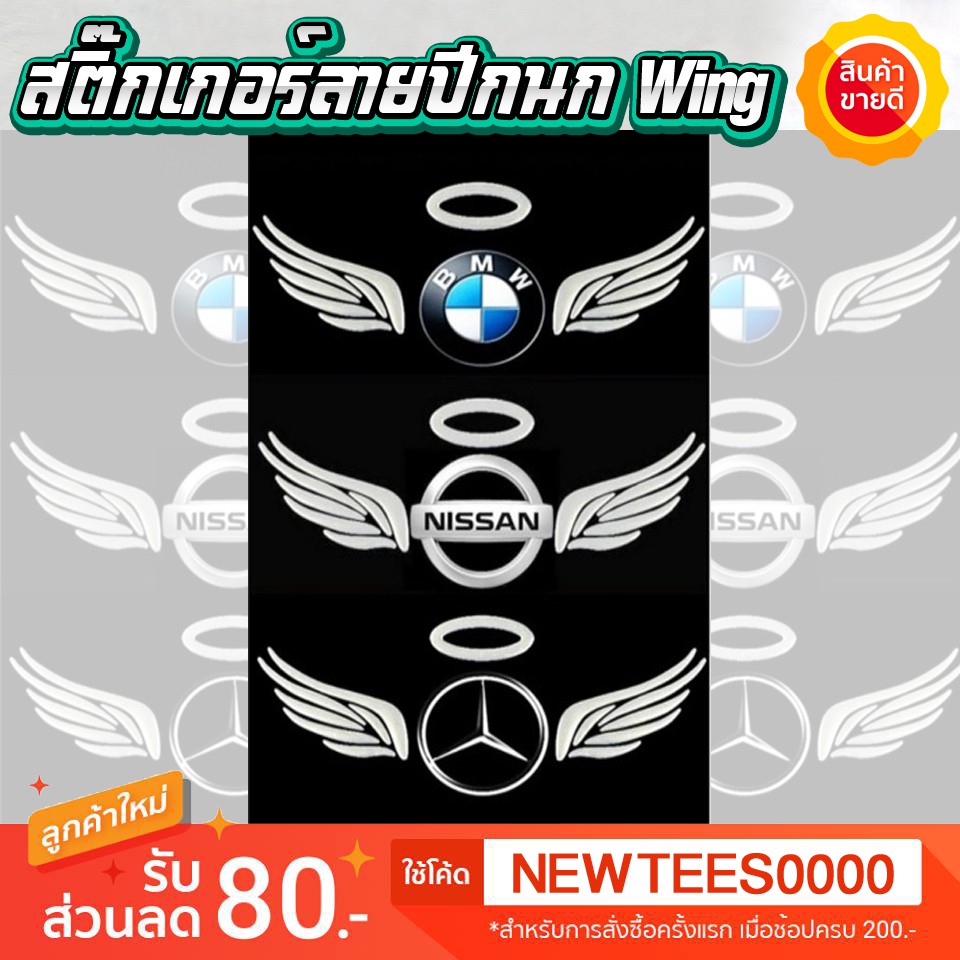 สติ๊กเกอร์ลายปีกนก Wing ติดโลโก้รถแบบ 3D