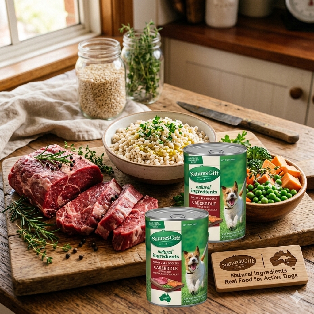 Natures' Gift Meal Time Beef Barley & Vegetable 700 g. อาหารสุนัข กระป๋อง สูตรเนื้อวัว 12 กระป๋อง