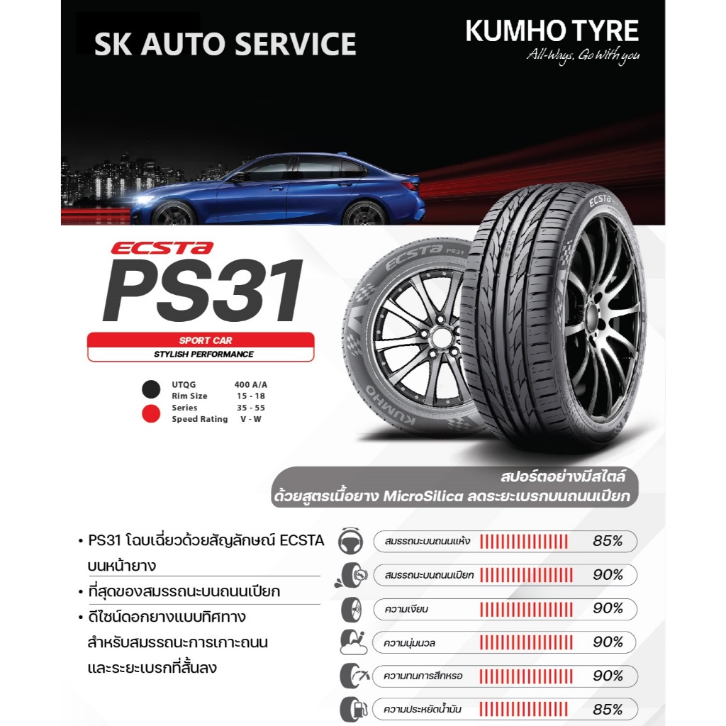 KUMHO ยางรถยนต์ 215/50R17 (ล้อขอบ 17) รุ่น ECSTA PS31 4 เส้น (ใหม่กริ๊ปปี 2026)