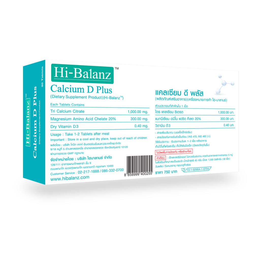 [ผลิตภัณฑ์ดูแลกระดูกและข้อ] Hi-Balanz Calcium D Plus แคลเซียม ดี พลัส 2 กล่อง รวม 60 เม็ด