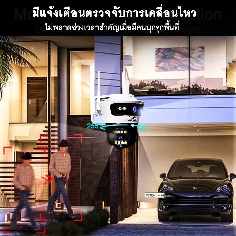 Junanvision กล้องวงจรปิดกันน้ำ 8MP 2เลนส์ ดูกล้อง2จอในเวลาเดียวกัน ไวไฟ 2.4G พูดสนทนาได้ app yoosee