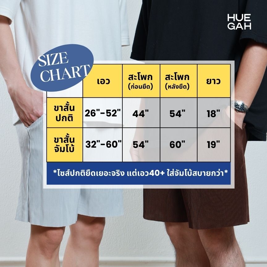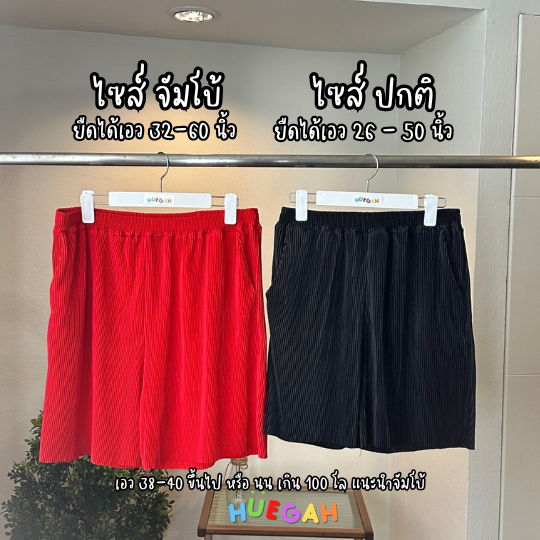 HUEGAH กางเกงพลีท ขาสั้น ไซส์ธรรมดา-จัมโบ้ ผ้าบางเบา ใส่สบาย ไซส์ใหญ่