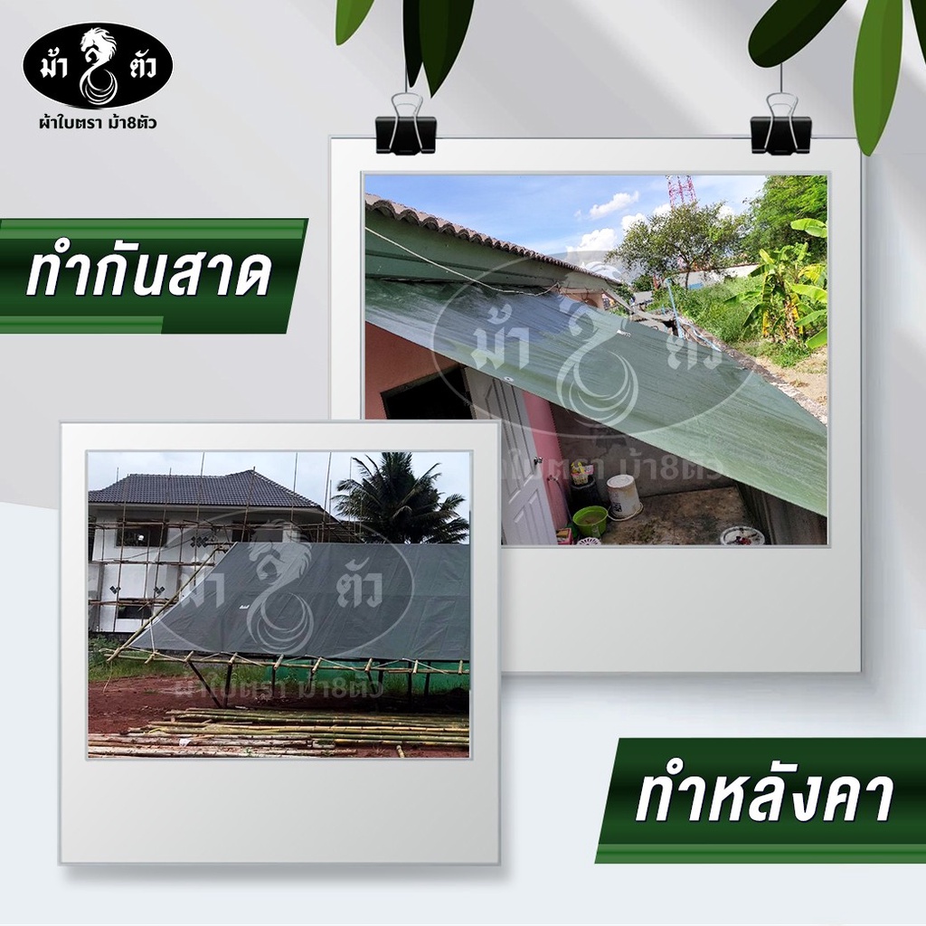 ม้า8ตัว ผ้าใบกันแดดกันฝน PE 2x3 แบบหนา 0.35 มิล ตาไก่ 50 cm กันน้ำ100% ปูบ่อ กันสาด คลุมรถ ฟลายชีท