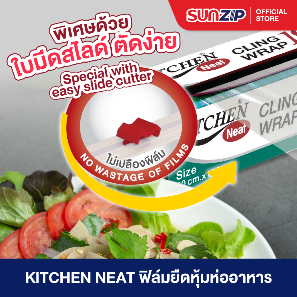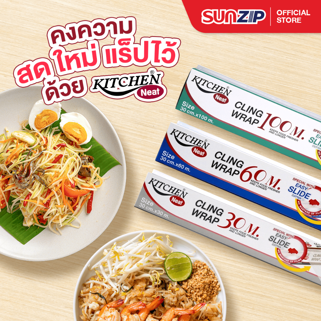 SUNZIP | Wrap ฟิล์มหุ้มอาหาร Food Grade กักเก็บความสดของอาหารได้ดี ไร้ปัญหากลิ่นรบกวนในตู้เย็น มีมีดตัดฟิล์มสไลด์ในตัว