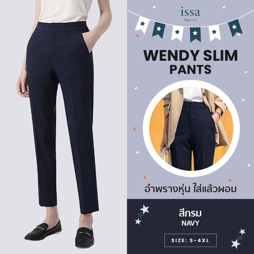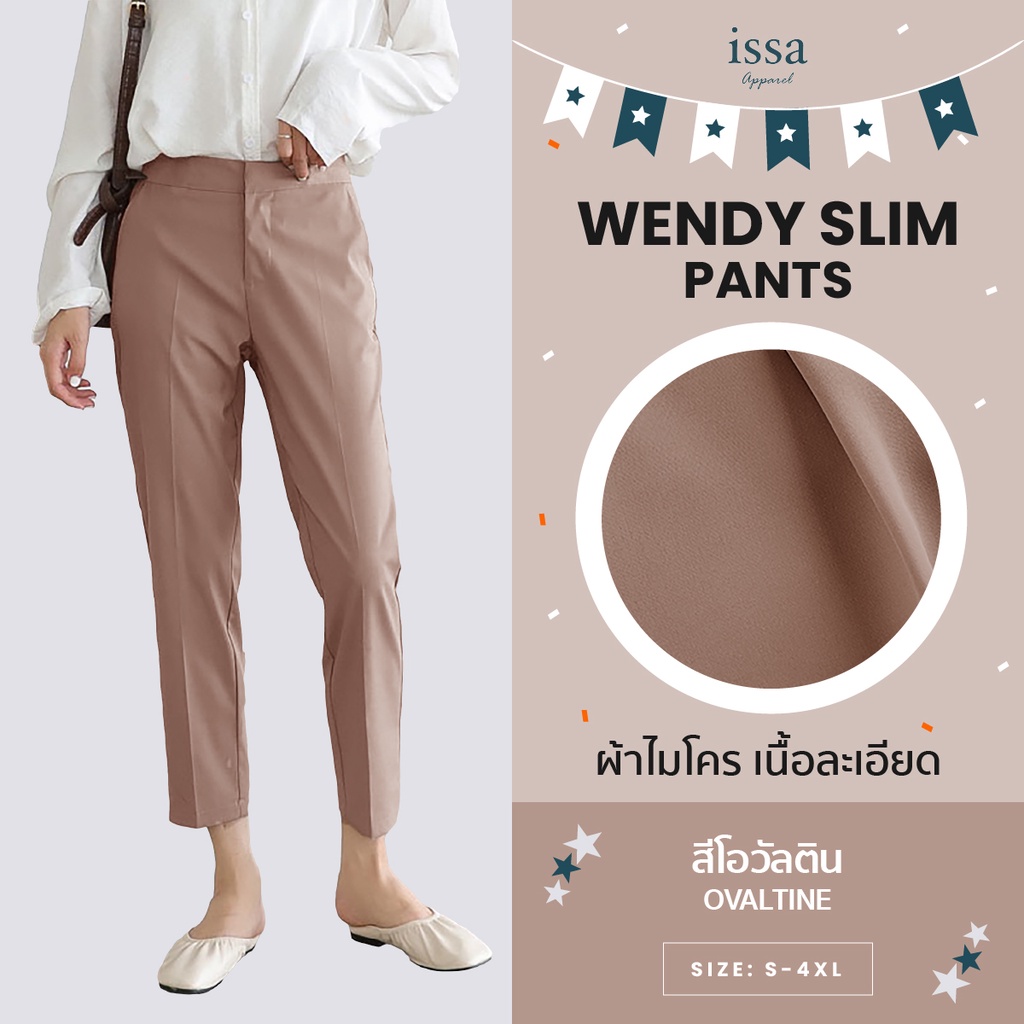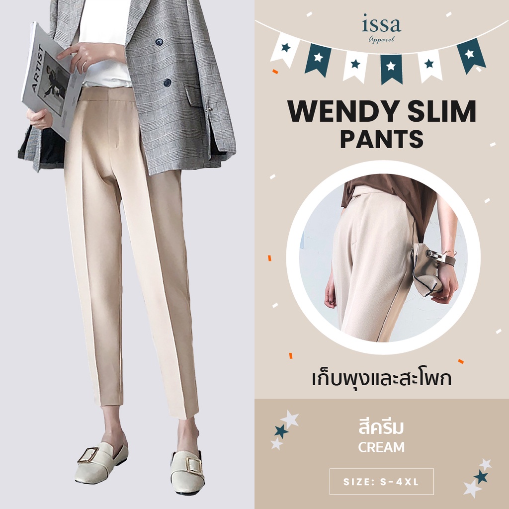 Wendy Slim ทรงกระบอกเล็ก ส่งด่วน+ส่งฟรี ไม่มีหูและไม่มีจีบหน้าผ้านุ่มใส่สบายกางเกงสีดำกางเกงขายาว