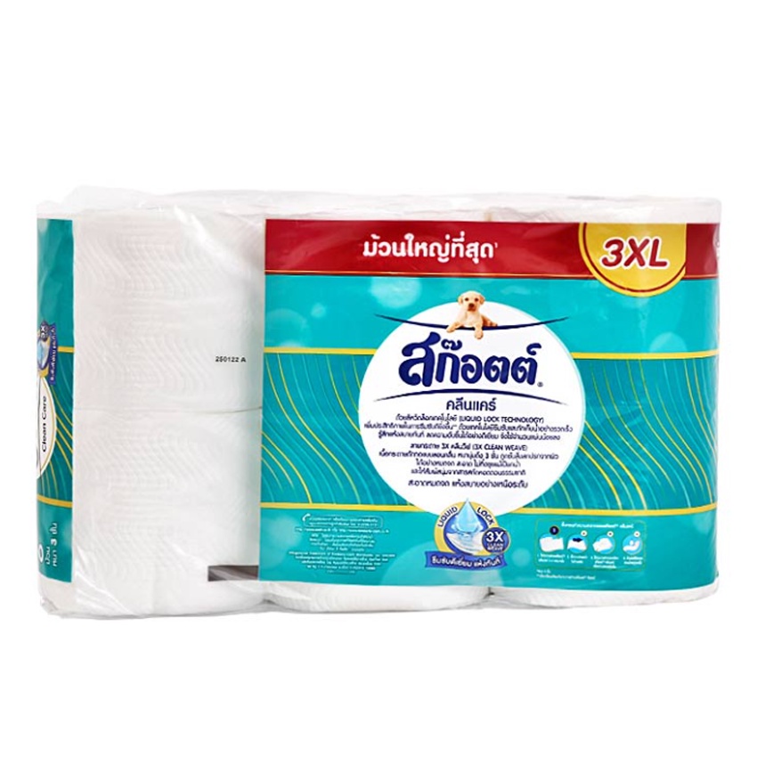 [ทั้งหมด 4 แพ็ค] สก็อต์ คลีนแคร์ กระดาษชำระหนา 3 ชั้น ม้วนใหญ่ที่สุด 3XL (แพ็ค 6 ม้วน) SCOTT CLEAN-CARE 3XL PACK 6 ROLLS