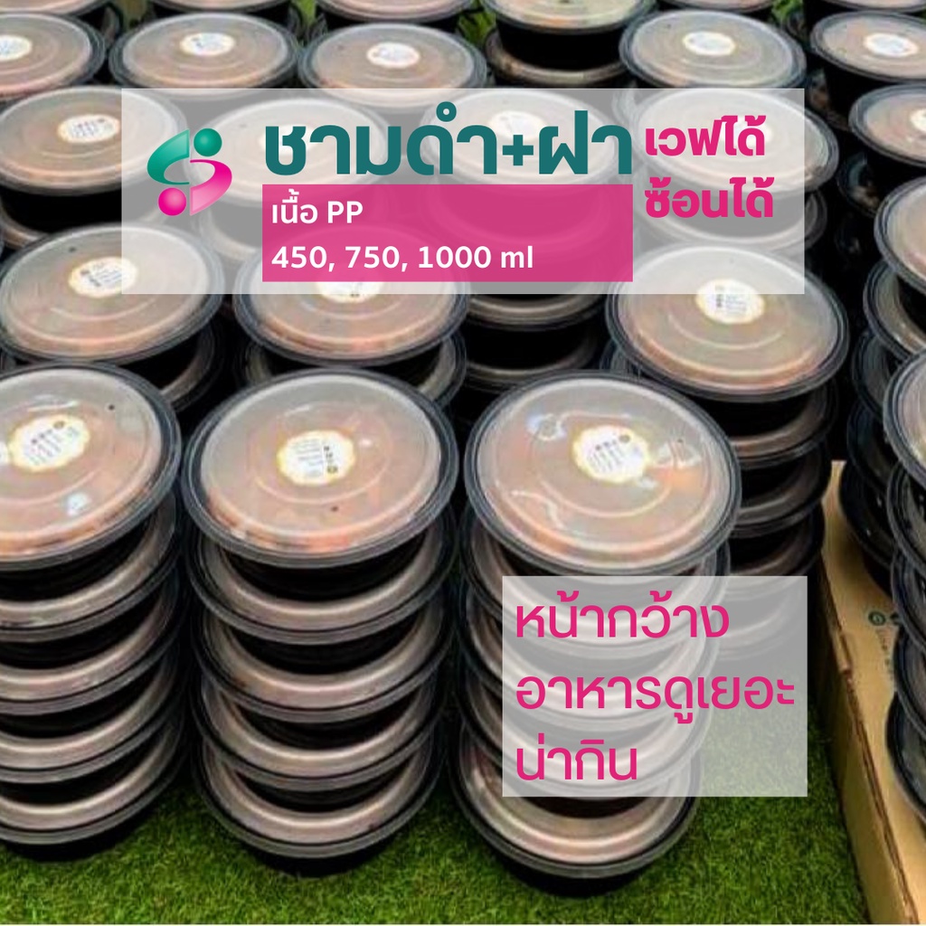 NLTY ชามหน้ากว้าง สีดำ+ฝา เนื้อPP เวฟได้ ใช้ซ้ำได้
