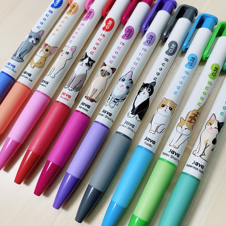 Java Naong Ballpoint Pen 0.38mm. (color ink) -- จาวา น้องแมว ปากกาลูกลื่นสี 0.38 มม. มีให้เลือก 9 สี