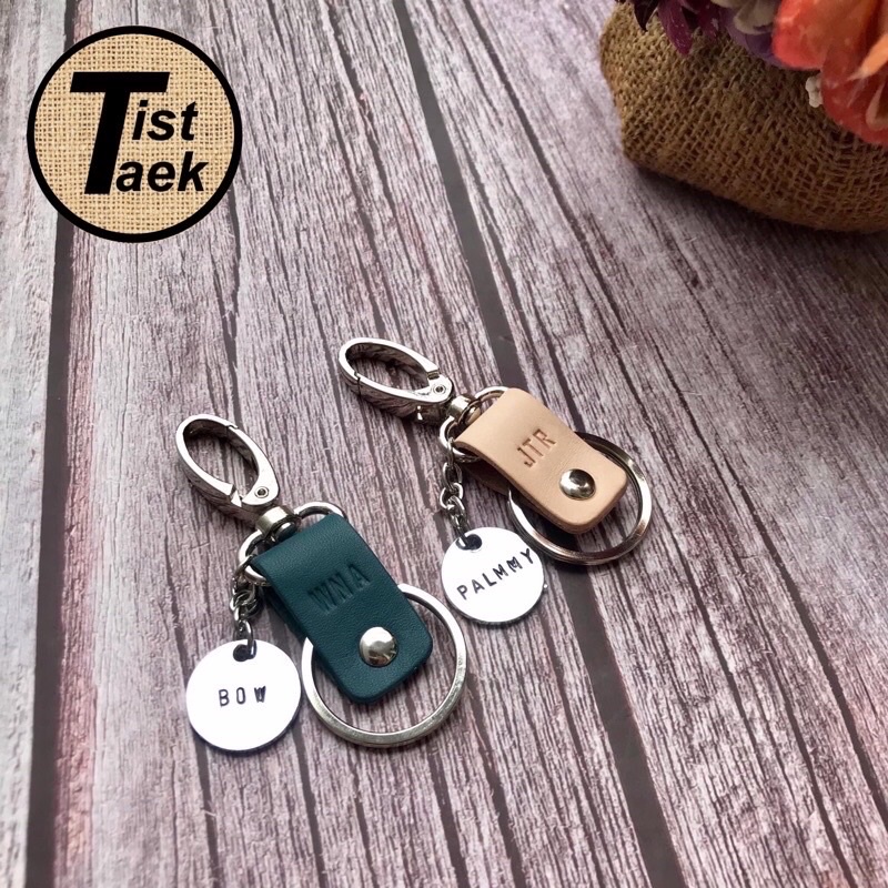 🇹🇭ร้านในไทยส่งไว พวงกุญแจหนังแท้ พร้อมแผ่นสลักกลม(อ่านรายละเอียดก่อนสั่งจ้า)