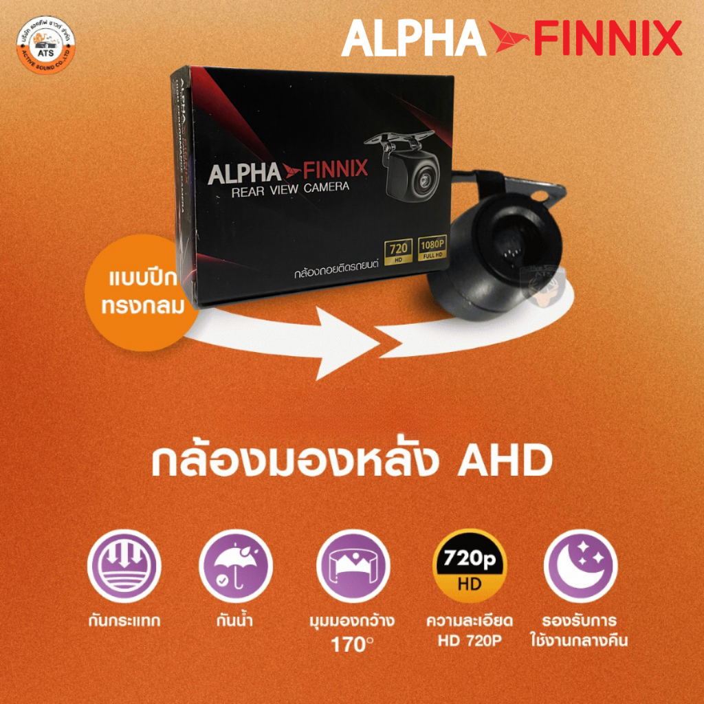 ALPHA FINNIX กล้องมองหลัง ติดรถยนต์ กล้องAHD แบบเจาะ และ แบบปีก มุมมอง 170องศา กันน้ำ สัญญาณ AHD กล้องเสริมติดรถยนต์