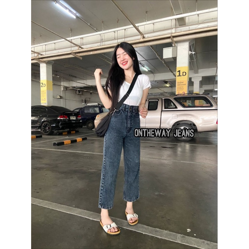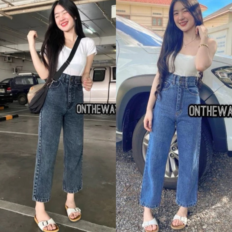 on the way กางเกงยีนส์ขากระบอก กระดุม2เม็ด