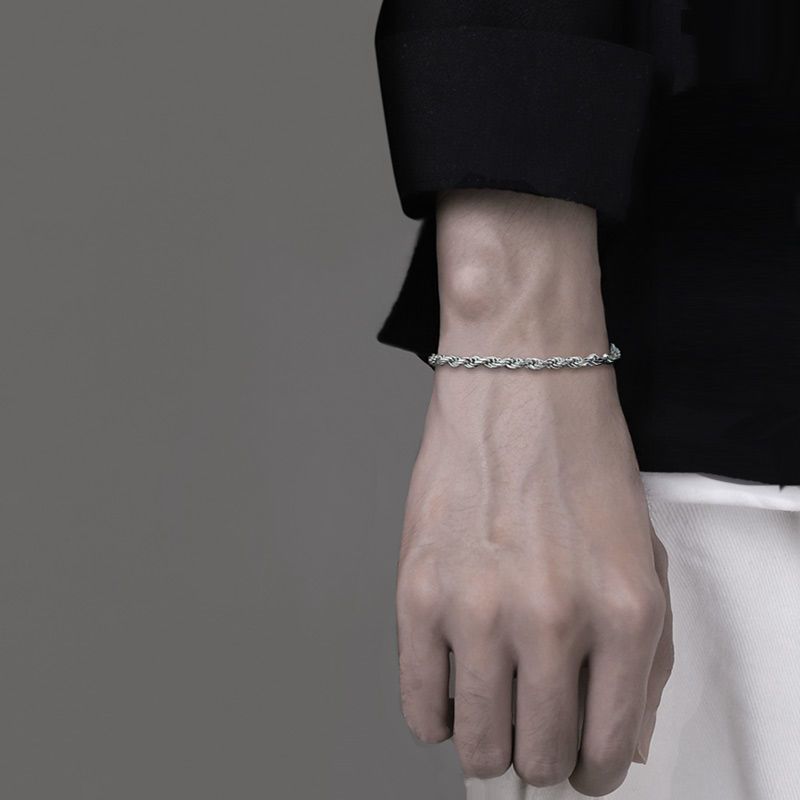 เครื่องประดับ สร้อยข้อมือ สีเงิน แบบเรียบง่าย แฟชั่นฮิปฮอป สไตล์เกาหลี สําหรับผู้ชาย และผู้หญิง
