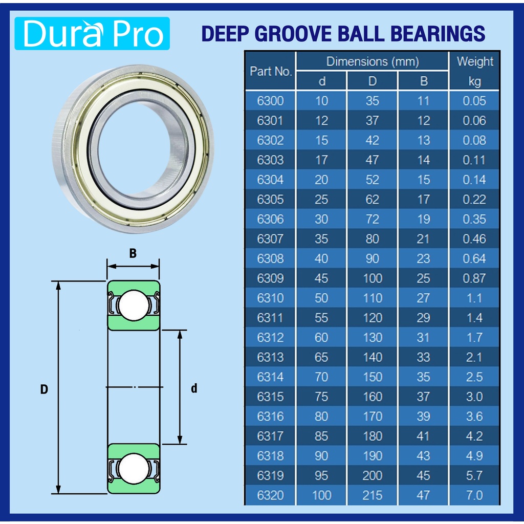 6300ZZ 6301ZZ 6302ZZ 6303ZZ 6304ZZ 6305ZZ KOYO ตลับลูกปืนเม็ดกลมร่องลึก ฝาเหล็ก (Deep Groove Ball Bearing) โดย Dura Pro