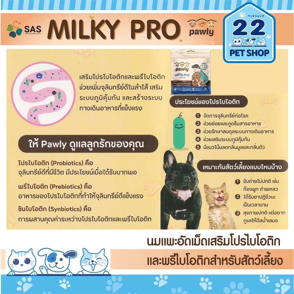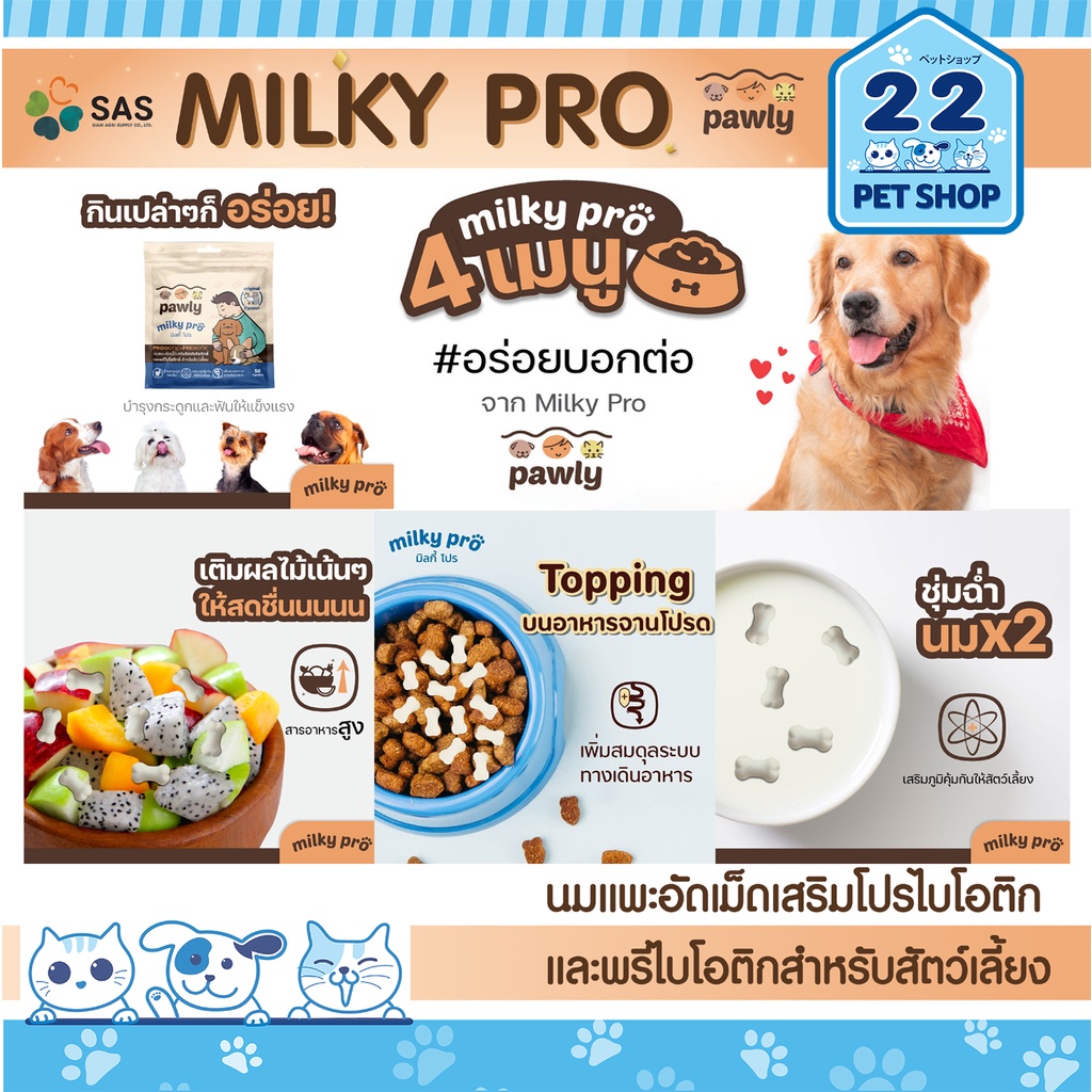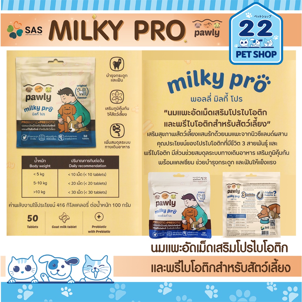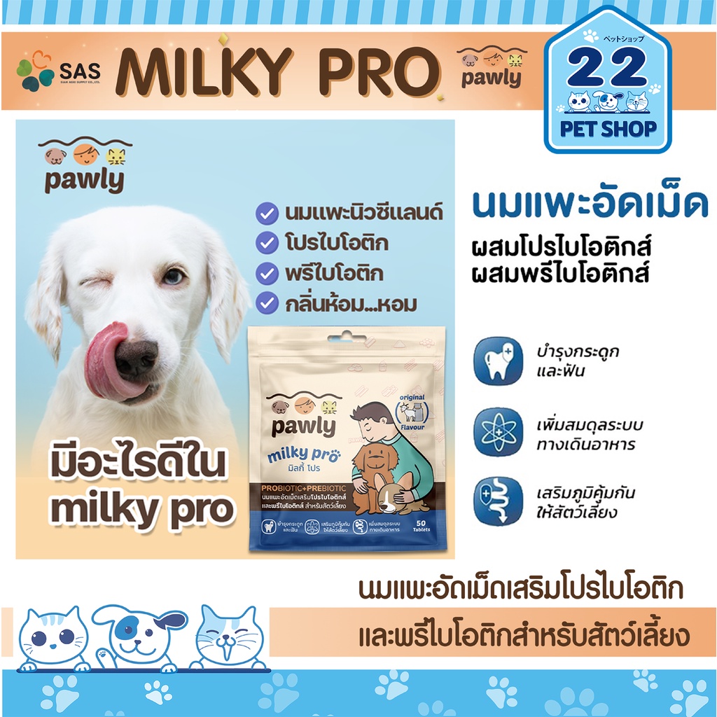 Pawly Milky pro นมแพะอัดเม็ดสำหรับน้องหมาน้องแมว ช่วยปรับสมดุลทางเดินอาหาร บำรุงกระดูก 50 เม็ด