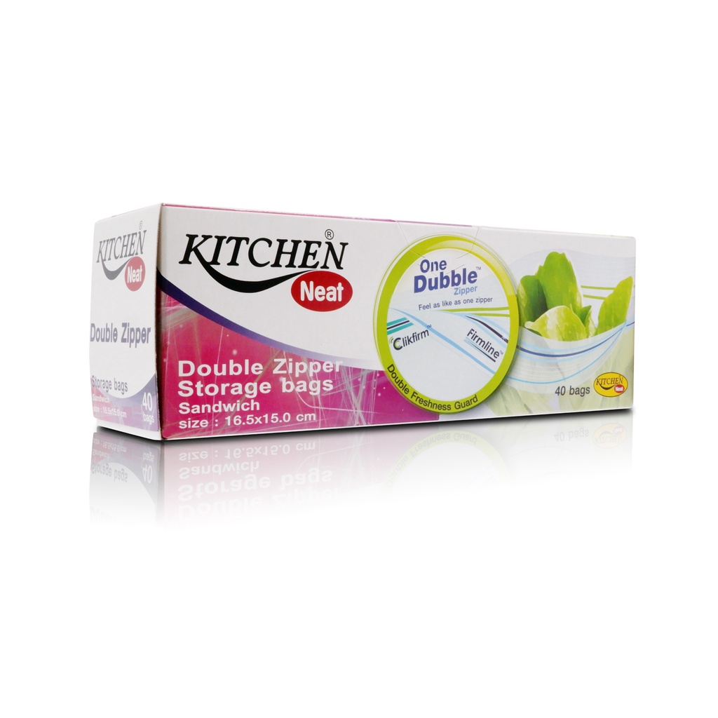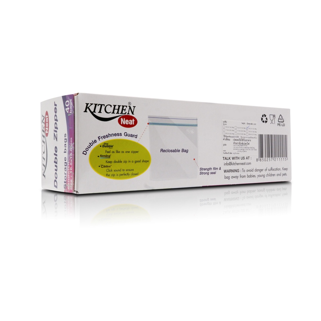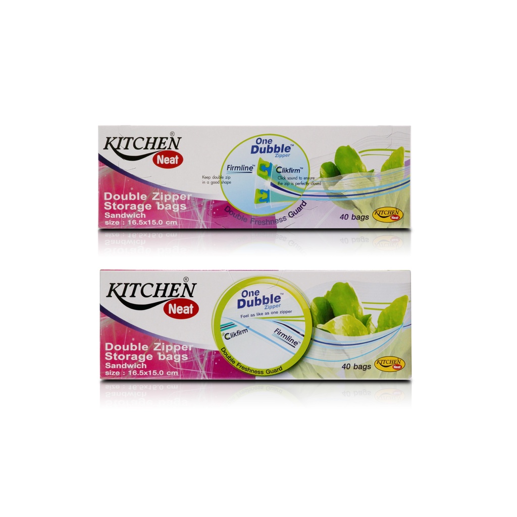 KITCHEN NEAT ถุงซิปคู่ถนอมอาหาร รุ่น Sandwich ขนาด 16.5 x 15 ซม. บรรจุ 40 ใบ/กล่อง Food Contract Grade ถุงซิปคู่ล็อคน้ำ