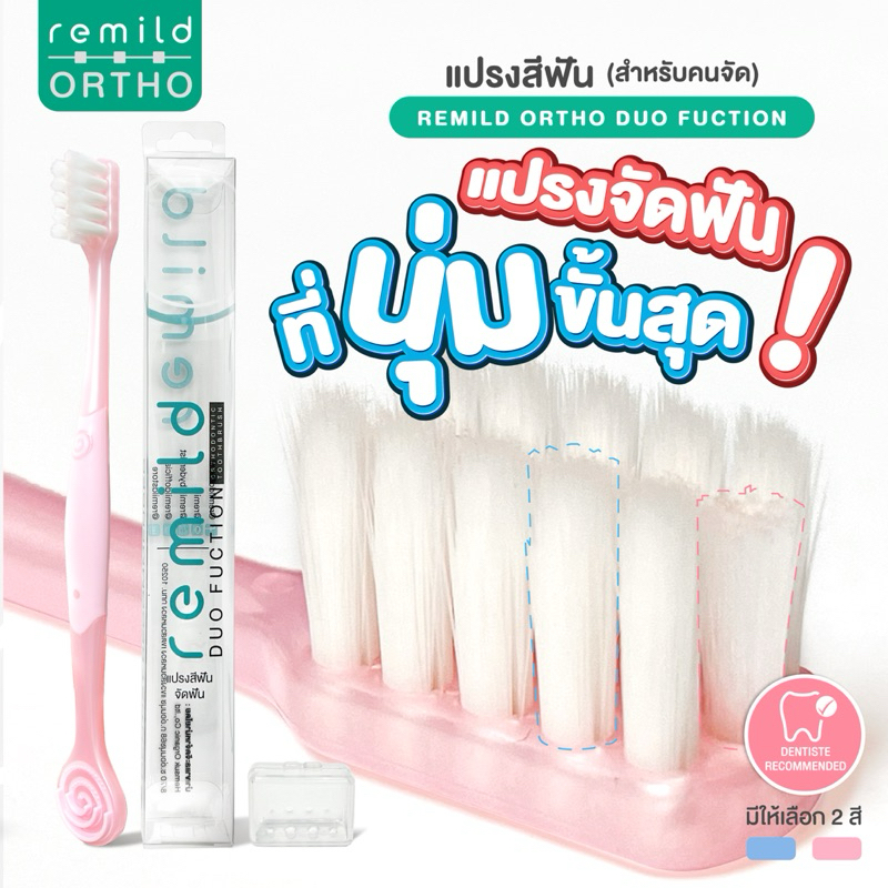 แพจเกจใหม่ Remild แปรงสีฟันจัดฟัน แปรงจัดฟัน ที่นุ่มที่สุด 2in1 รุ่น Duo ขนแปรง 2 ชนิด พร้อมที่ขูดลิ้น ฟรีที่ครอบแปรง
