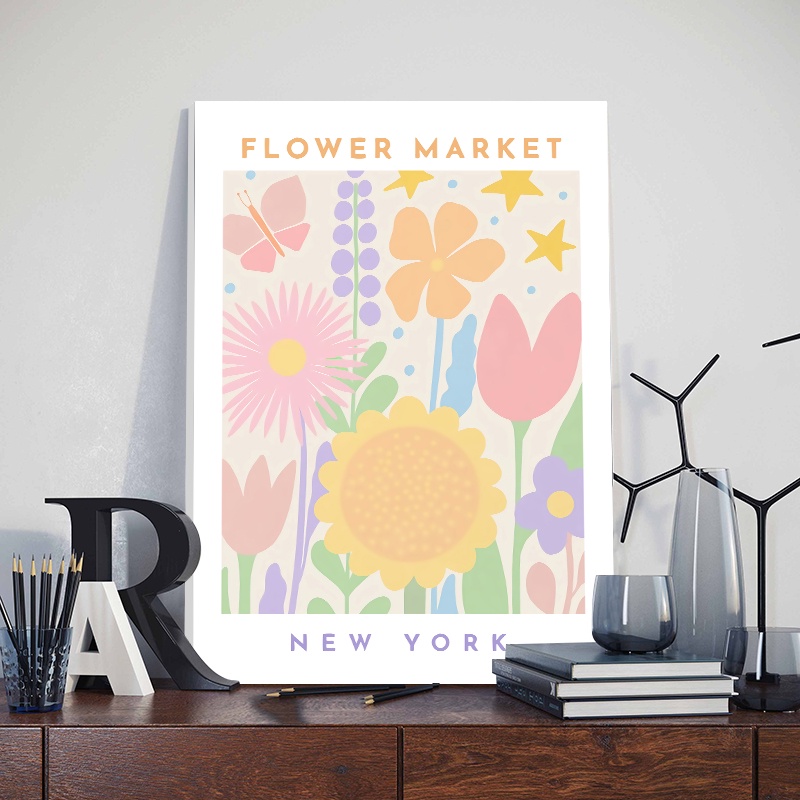(พร้อมกรอบ) ภาพวาดผ้าใบ ลายดอกไม้นามธรรม สไตล์นอร์ดิก ย้อนยุค สําหรับตกแต่งผนัง ห้องนั่งเล่น