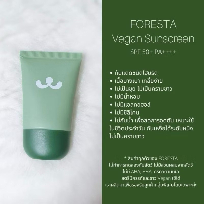 (ตัวแทน) ☁️ Foresta ครีมกันแดด Vegan Sunscreen SPF50+ PA++++ ฟอเรสต้า วีแกน ซันสกรีน เอสพีเอฟ 50+ พีเอ++++