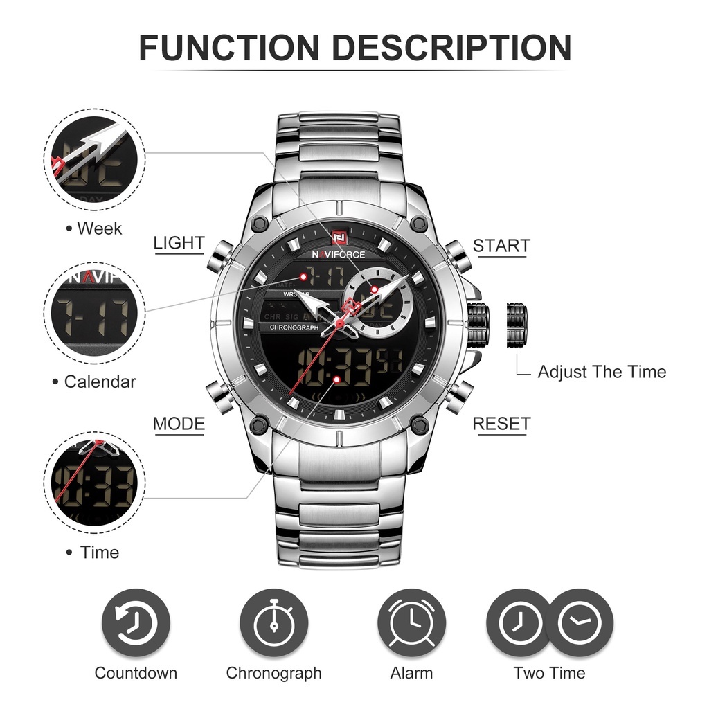 Naviforce นาฬิกาข้อมือควอตซ์แฟชั่น สายแสตนเลส โครโนกราฟ อเนกประสงค์ กันน้ํา สําหรับผู้ชาย 9163