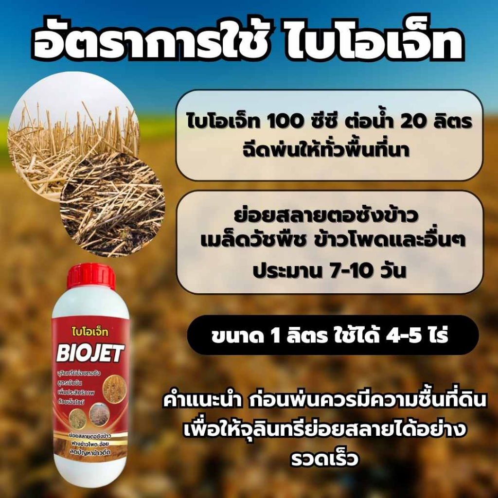 ไบโอเจ็ท จุลินทรีย์ ย่อยฟางข้าว จัดการตอซังข้าว ลดข้าวดีดข้าวเด้ง 1ลิตร