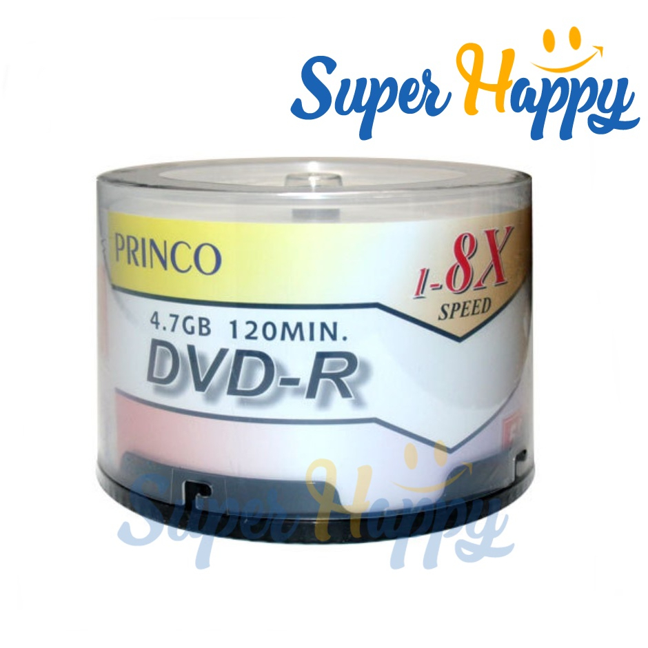 แผ่นดีวีดี DVD-R (1 หลอด 50 แผ่น) PRINCO 4.7GB 120MIN💿 ขนาดความจุ 4.7 GB บันทึก VDO 120 นาที ต่อแผ่น