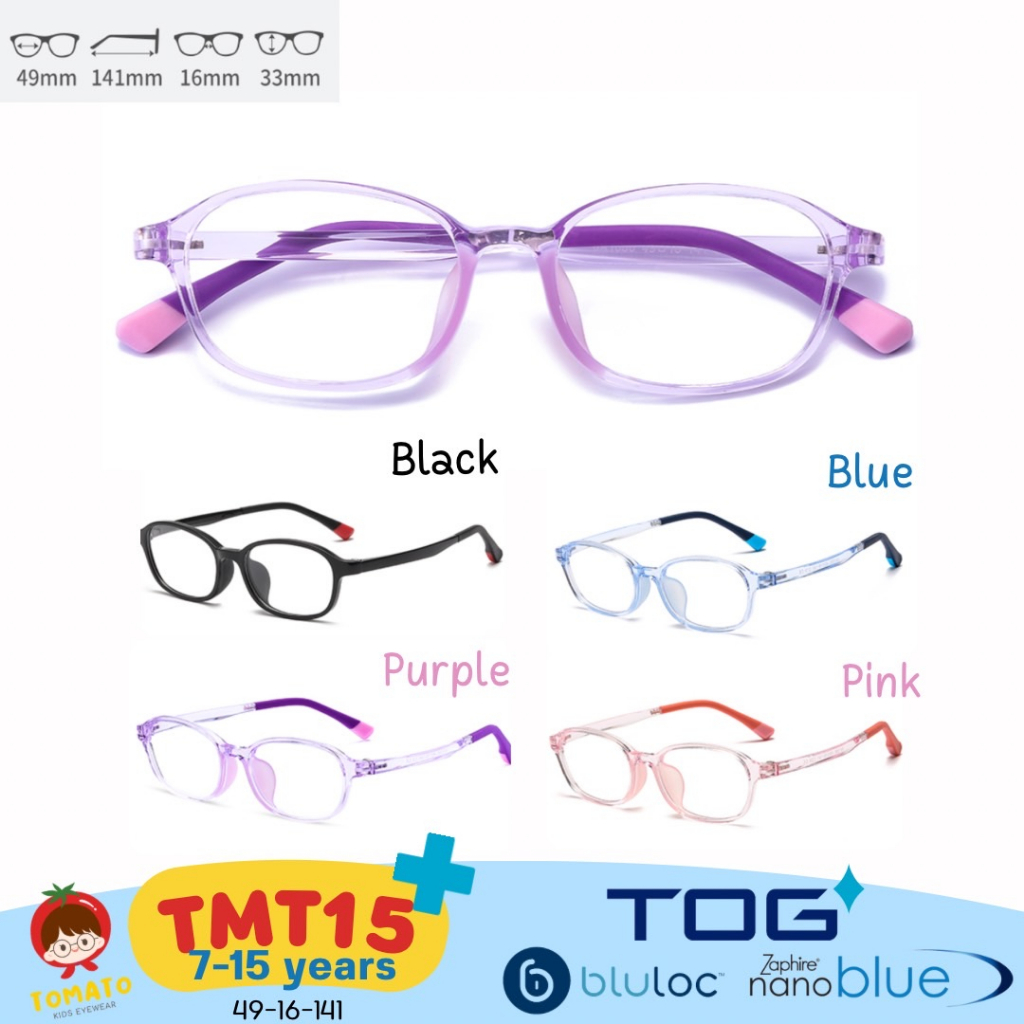 แว่นกรองแสงสีฟ้าเด็ก ดูมือถือ *เลนส์ตัดใหม่ TOG Nanoblue * แว่นตาเด็กยืดหยุ่นดี เด็กโต TMT15 7-15 ปี