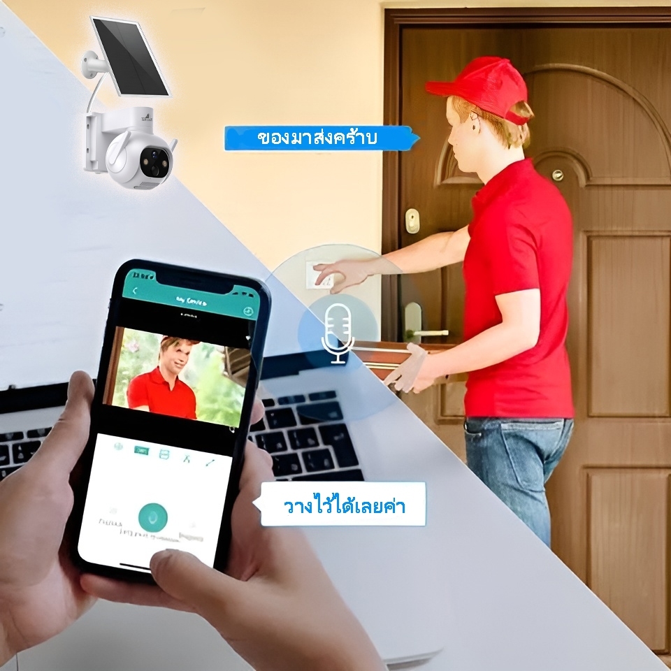 HOME-MALL กล้องวงจรปิดใส่ซิมโซล่าเซลล์ รุ่น 4K-4G-G7กล้อง4g มาพร้อม ไฟสปอร์ตไลท์ โซล่าเซลล์ 4G