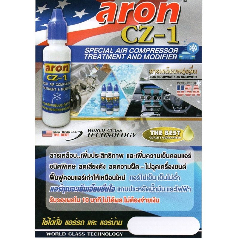 ARON CZ-1 สารเพิ่มประสิทธิภาพคอมแอร์รถยนต์และแอร์บ้าน จากราคาปกติ 660 บาท ลด 20%