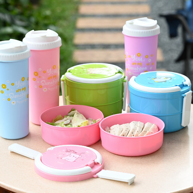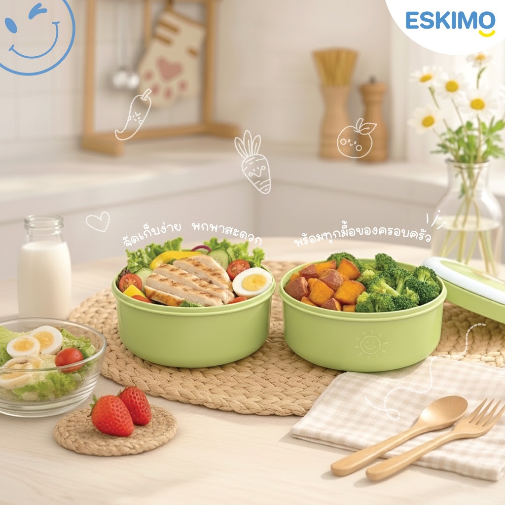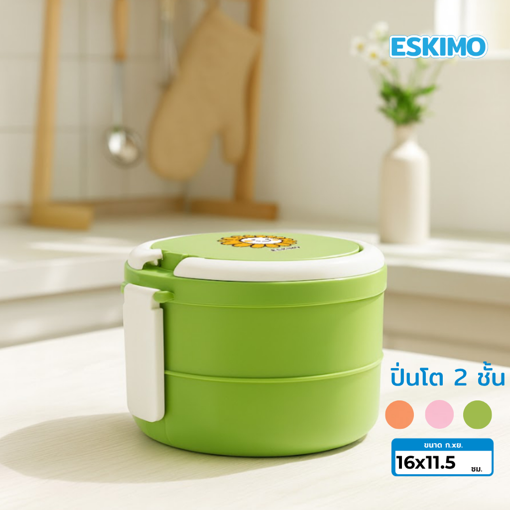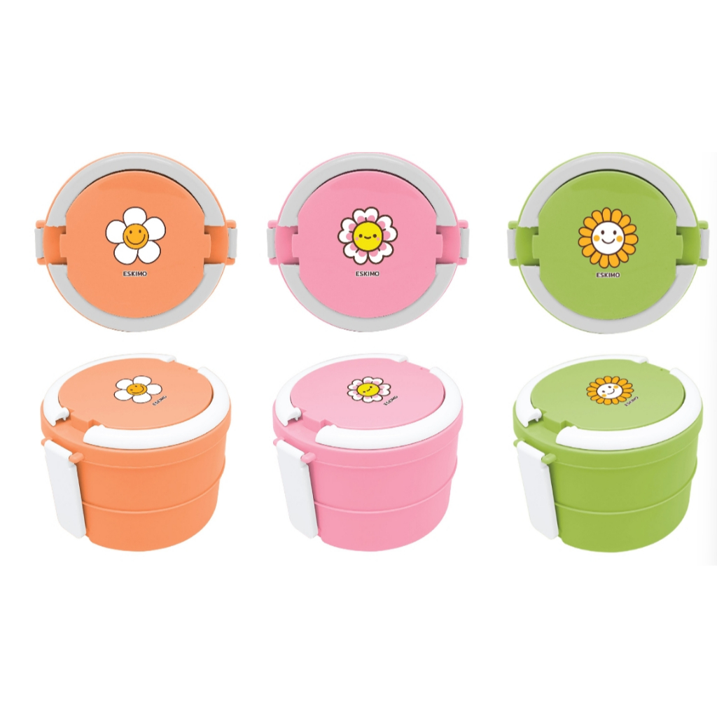 ️Eskimo ปิ่นโต 2 ชั้น กล่องใส่อาหาร พลาสติก เข้าไมโครเวฟได้ สีสันน่ารัก ลาย Happy Flower FC01