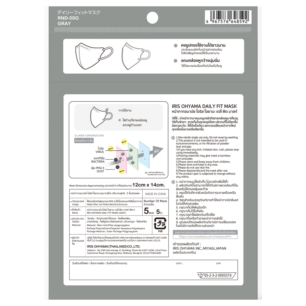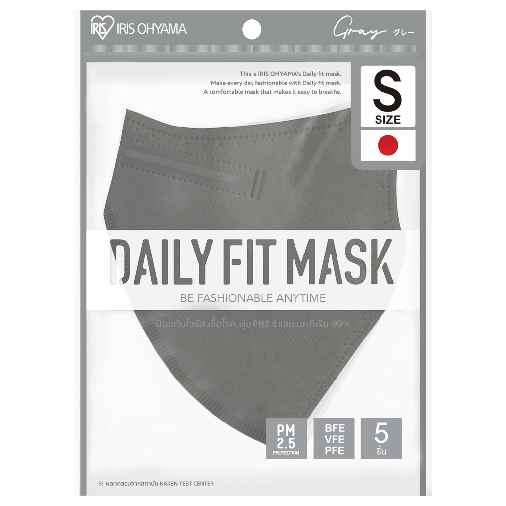 IRIS OHYAMA - Daily Fit Mask S size Gray (5pcs) ไอริส โอยามะ หน้ากากอนามัย ไอริส โอยามะ รุ่น เดลี่ฟิต ไซร์ เอส สีเทา