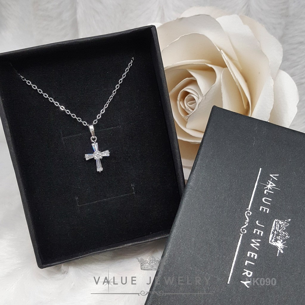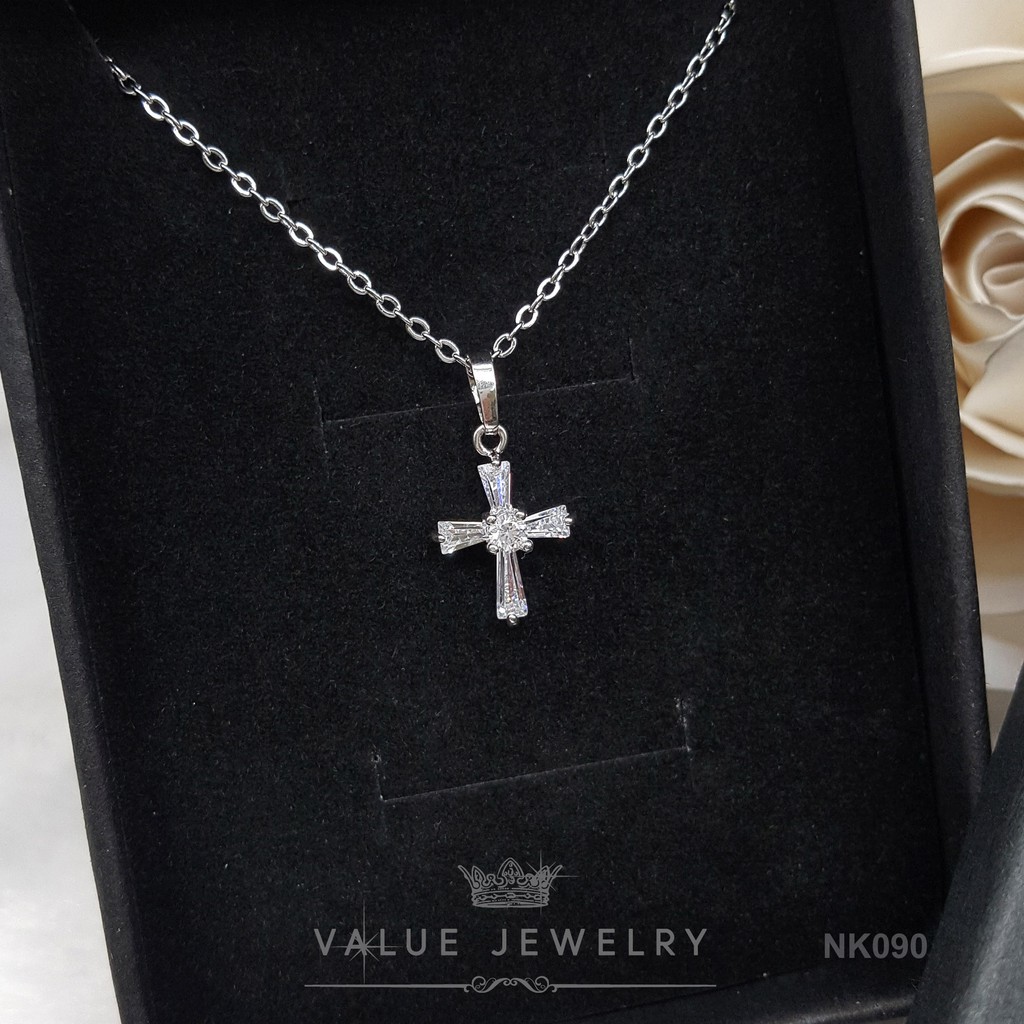 สร้อยจี้ NK090 ไม้กางเขน เล็ก Cross คริสตัลแท้ วิบวับเหมือนเพชรแท้ ใส่ได้ทุกวัน สร้อย สร้อยคอ เครื่องประดับ ValueJewelry