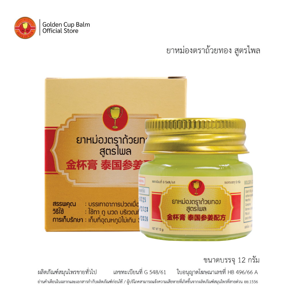 GoldenCup Balm Plai Formula | ยาหม่องตราถ้วยทอง สูตรไพล ขวด 12g