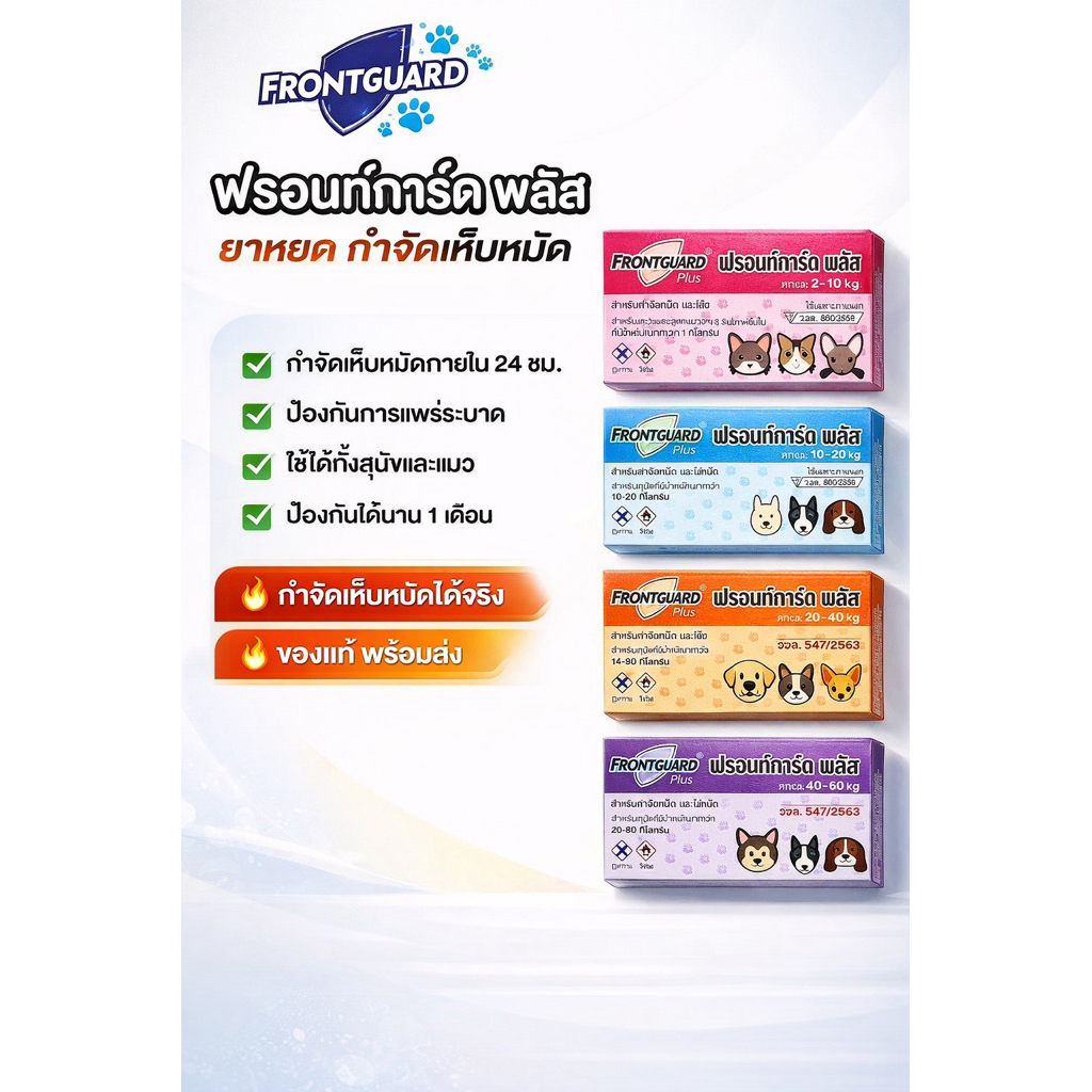 [10กล่อง] ถูก🔥+ล็อตใหม่+ Frontguard Plus หยดกำจัด เห็บ หมัด ไข่หมัด สำหรับสุนัข 10-20 kg.