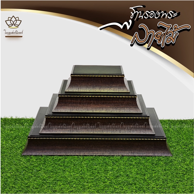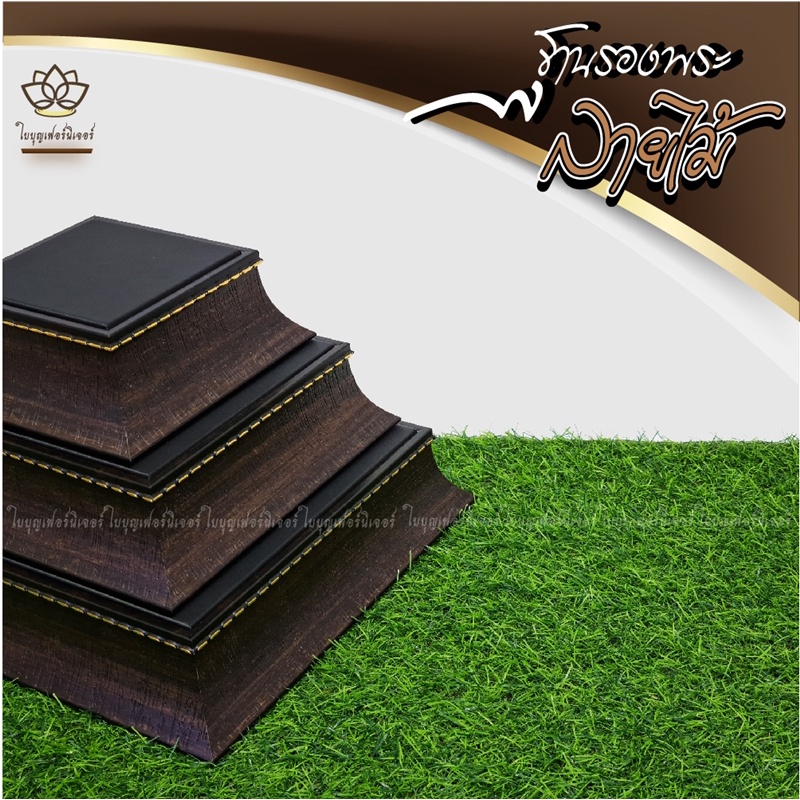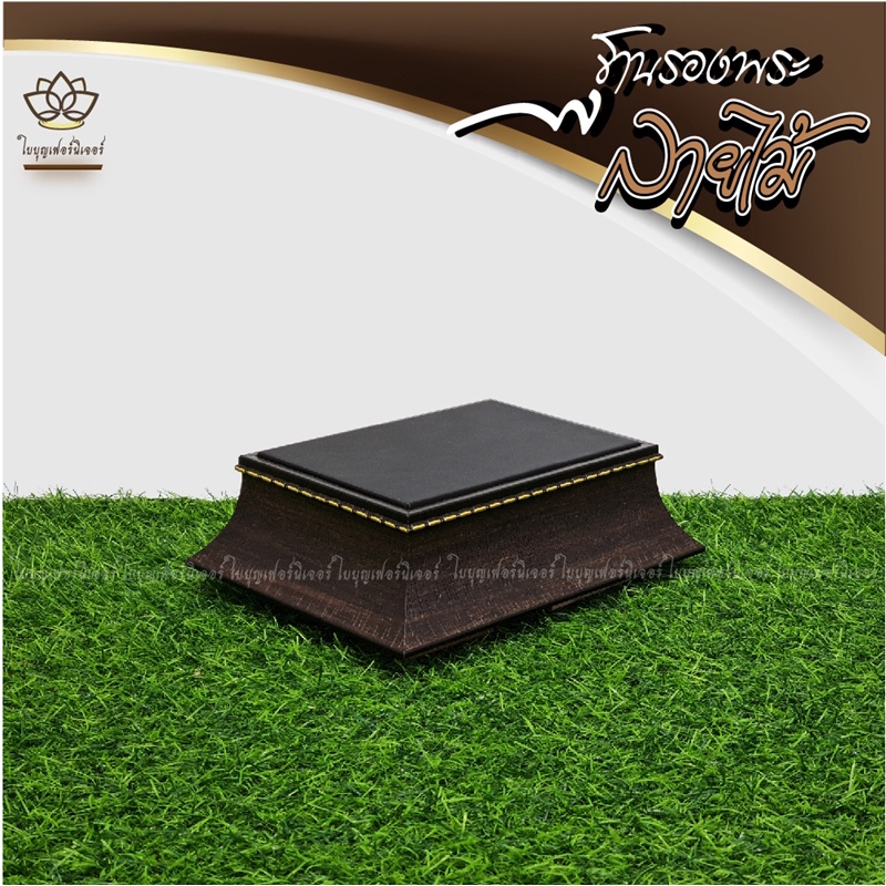 ฐานรองพระ ลายไม้ ใบบุญเฟอร์นิเจอร์ ฐานพระสีดำ แท่นวางพระ สูง 2 นิ้ว [ B026-8 ]