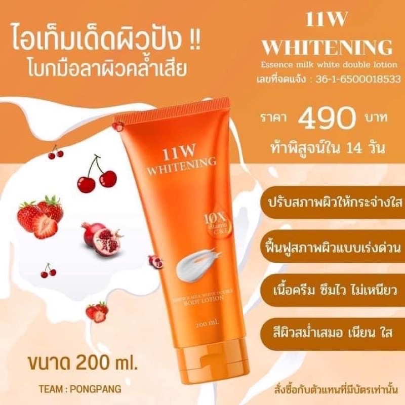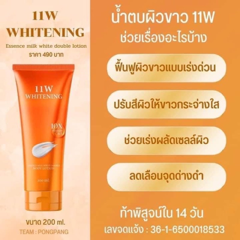 11w Whitening body lotion โลชั่นหลอดสีส้ม โลชั่นผิวขาว 200 ml.