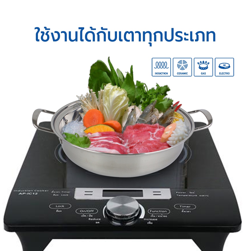RRS หม้อ หม้อสุกี้ หม้อชาบู พร้อมฝา 27 ซม. - อาหารไม่ติดก้นหม้อ- ใช้กับเตาแม่หล็กไฟฟ้าได้
