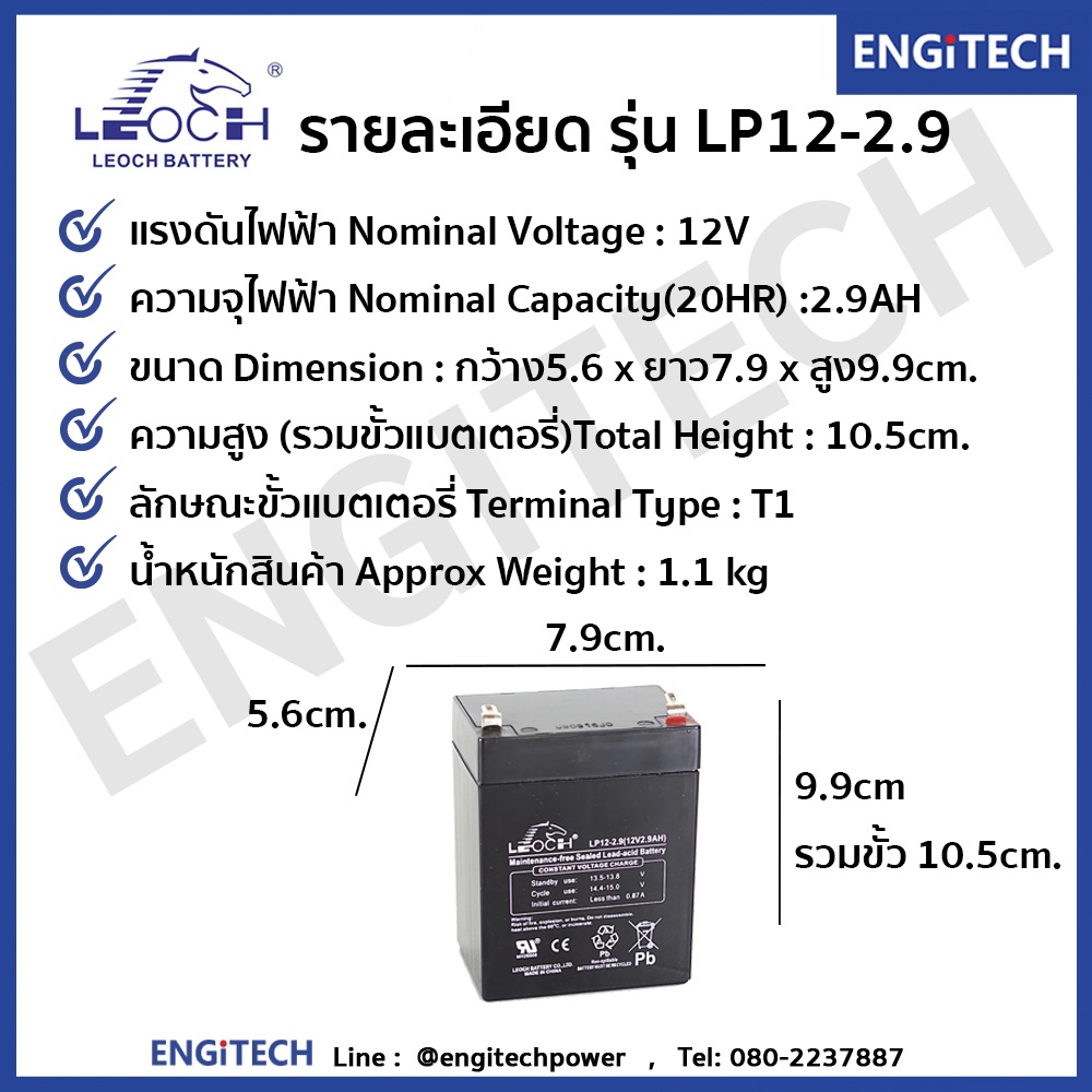 LEOCH แบตเตอรี่ แห้ง LP12-2.9 ( 12V 2.9AH ) VRLA Battery แบต สำรองไฟ UPS ไฟฉุกเฉิน รถไฟฟ้า ตาชั่ง ไฟ