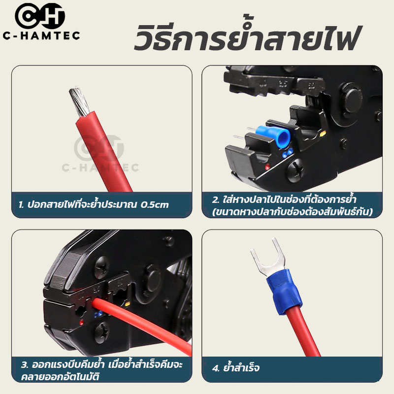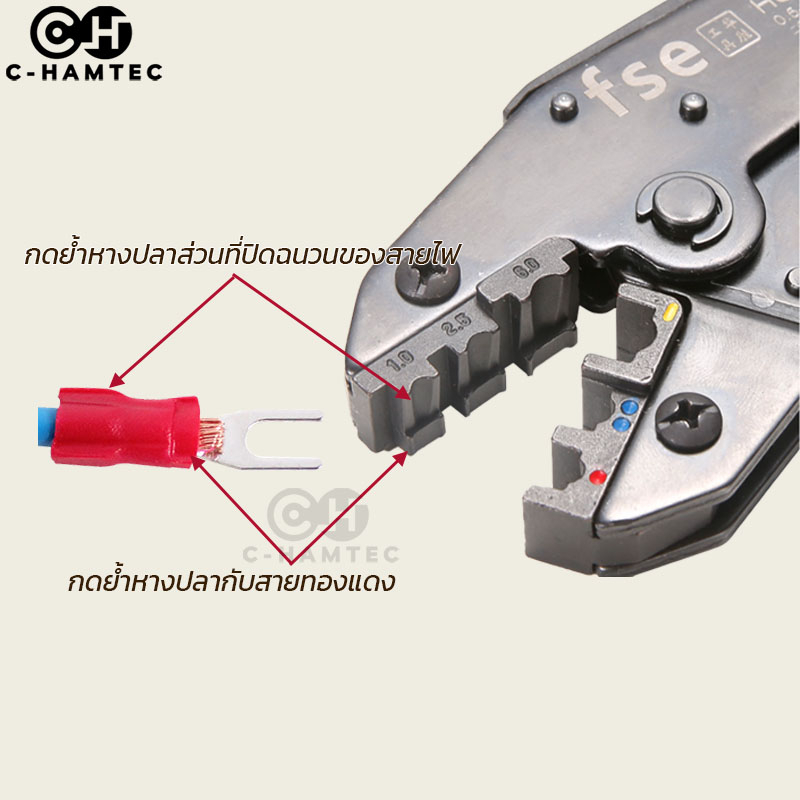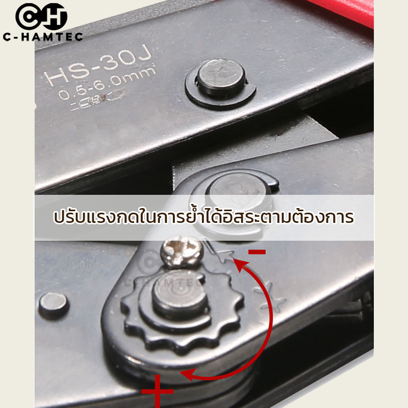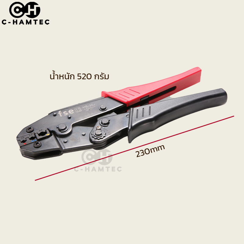 HS-30J คีมย้ำหางปลาแบบหุ้มฉนวน ขนาดสาย 0.5-6.0SQ.MM ใช้กับหางปลา SV/RV/MPD/FRD/MDD/FDD/FDFD