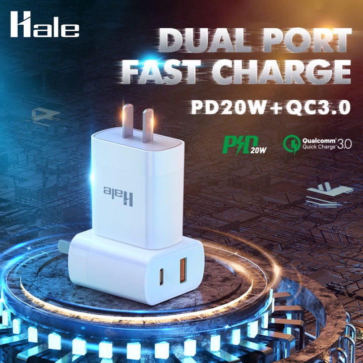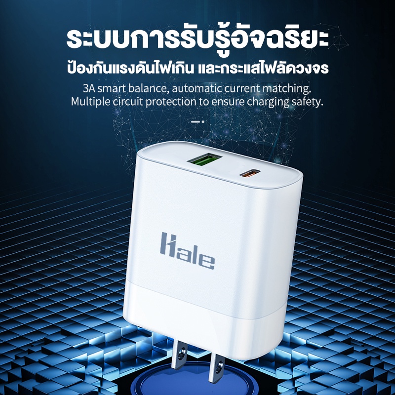 [แถมฟรี] ไม่รับประกันของแถม Hale ชาร์จเร็วแบบช่อง Quick Charger (2ช่อง) PD Fast Charger กระแสไฟชาร์จสูงสุด 22.5 w HCS-10