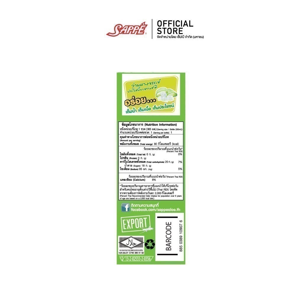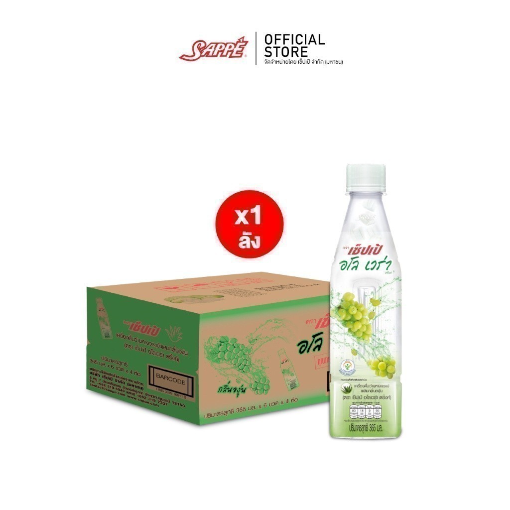 [ยกลัง] เซ็ปเป้ เครื่องดื่ม อโลเวร่า สูตรองุ่นขาว Sappe Aloe Vera Drink - Grape จำนวน 24 ขวด
